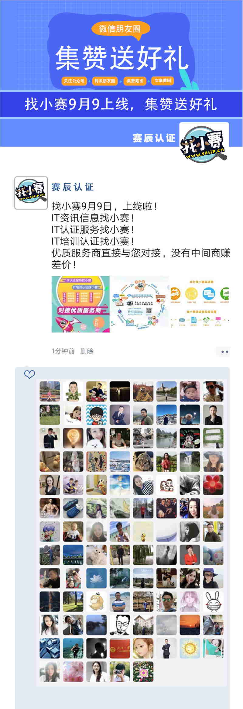 分享找小賽指定活動圖片到朋友圈集贊并附上相應文字: